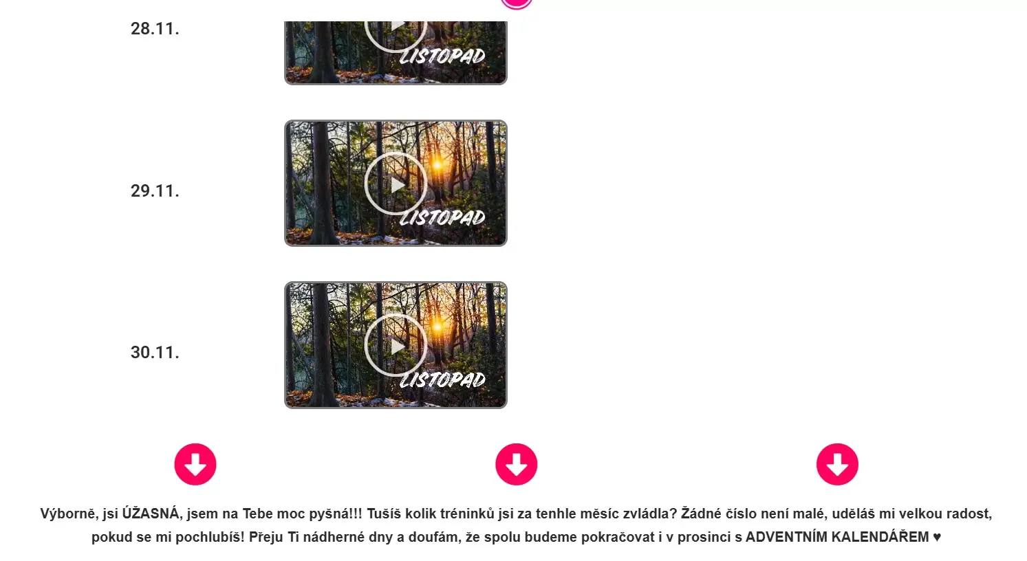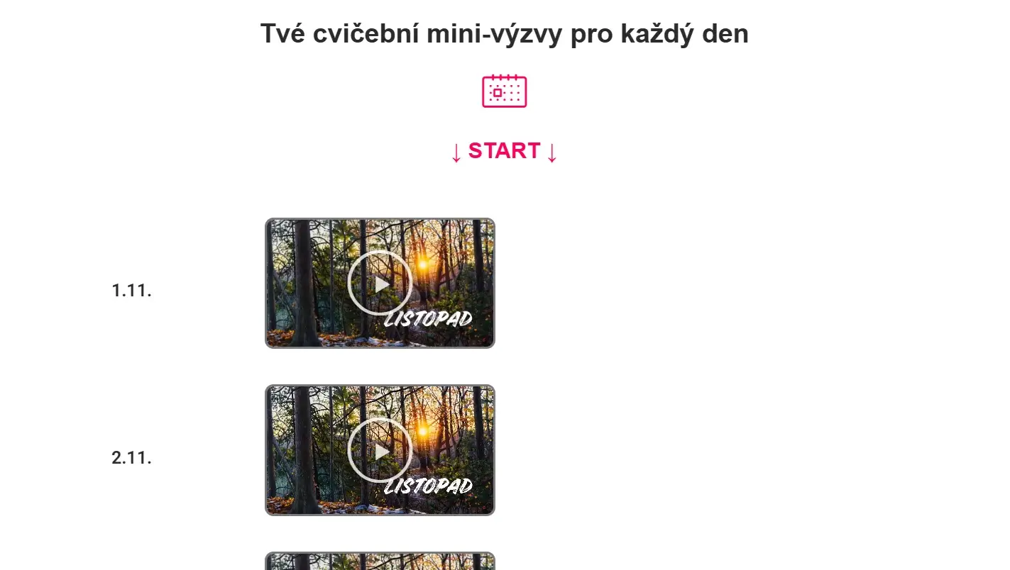 - Pořadí cvičebních videí v celém kalendáři jsem pečlivě zvolila tak, aby dávalo smysl a ladilo k sobě jako celek